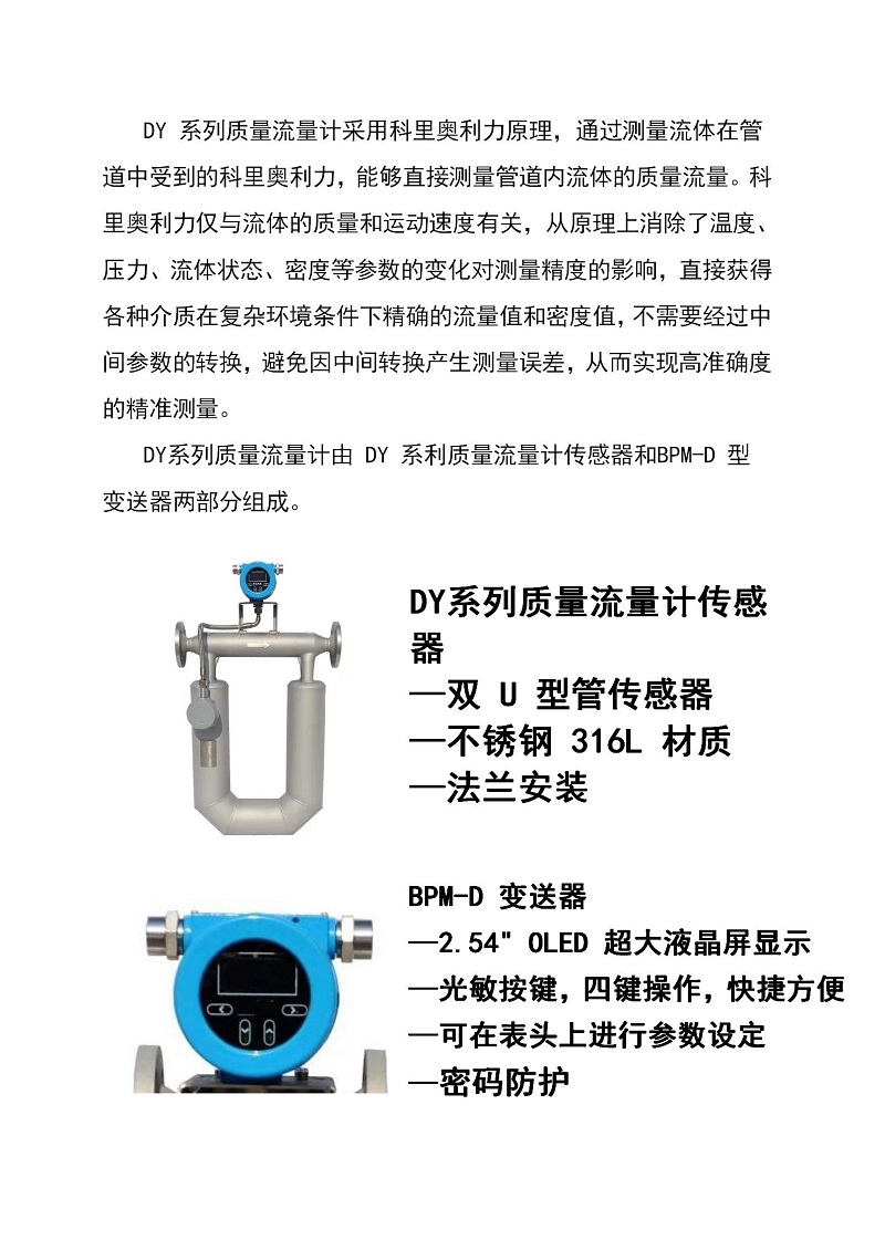 DY 係列質量丝瓜视频在线免费观看采用科裏奧利力原理,通過測量流體在管道中受到的科裏奧利力,能夠直接測量管道內流體的質量流量。可測溫度:(-240~204)℃